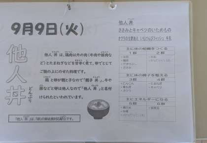 他人丼 ささみとキャベツのいためもの オクラの甘酢あえ