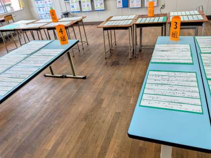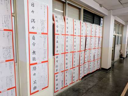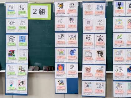 次の部屋は国語科の各学年の作品です。1年生は創作漢字クイズ、2年生は短歌、3年生は創作四字熟語です。