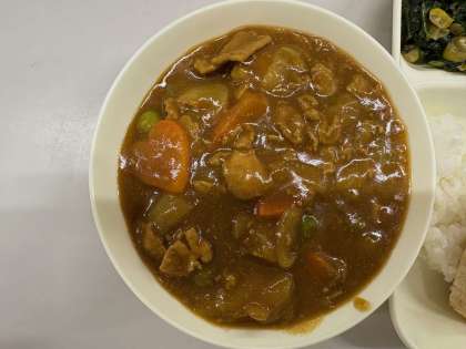 今日はみんな大好きカレーライスです。ちなみに筆者は「ハンバーグカレーほうれんそうトッピング」でいただきました。えっ桃はって?・・・次回チャレンジします。