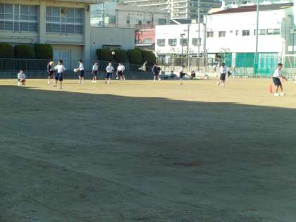午後1時、只今の気温17度、日陰と日向の気温差が結構あるなか、今日は1年生がサッカーボールでのキック・リフティング・ドリブルの実技テストが行われました。うまくできますように。