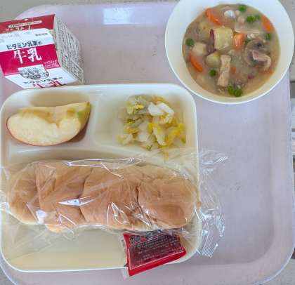 りんご コッペパン 牛乳 です