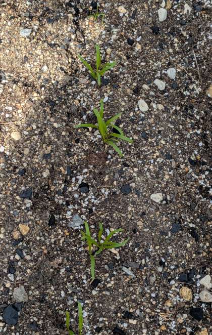 先日さつまいも掘りを終え、引き続いて秋冬野菜を植えています。今日の画面は大根の双葉が成長し本葉が出始めている様子です。そのほかに菊菜とほうれん草の種もまきましたが、ほうれん草が先に発芽しました。今後も成長の様子をご覧いただく予定です。