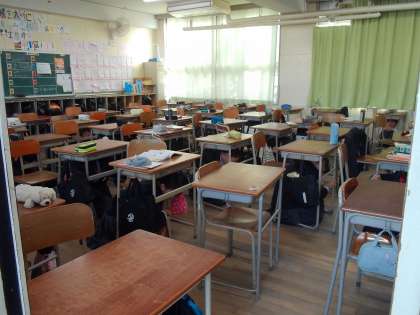 地震発生とともに落下物から身を守るため各自机の下にもぐりこみ、引き続き津波発生警報とともに高所(3階)へと避難しました。