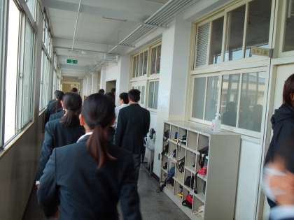 今日の6限に、全校生対象に地震とその後の津波発生警報の発令に伴う避難訓練を実施しました。
