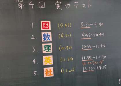 今日は第4回実力テストです。これまで習った範囲を対象に実施されます。高校受験の際の志望校決定の判断材料でもありますのでしっかり取り組みましょう。
