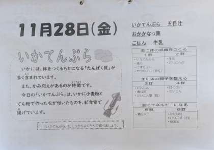 お昼時、いかのてんぷらの香ばしい香りが食欲をそそります。今日もみんなで美味しくいただきました❣