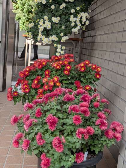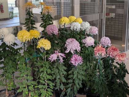 これまで校内の菊の花の咲き具合を順に載せてきましたが、今が見ごろと咲き誇りようやく満開となりました。菊は昔から人々に愛されてきた花で種類も多く、豪華な花や楚々と咲くものまで多様です。また、花もちもよいので、切り花としても人気ですね。