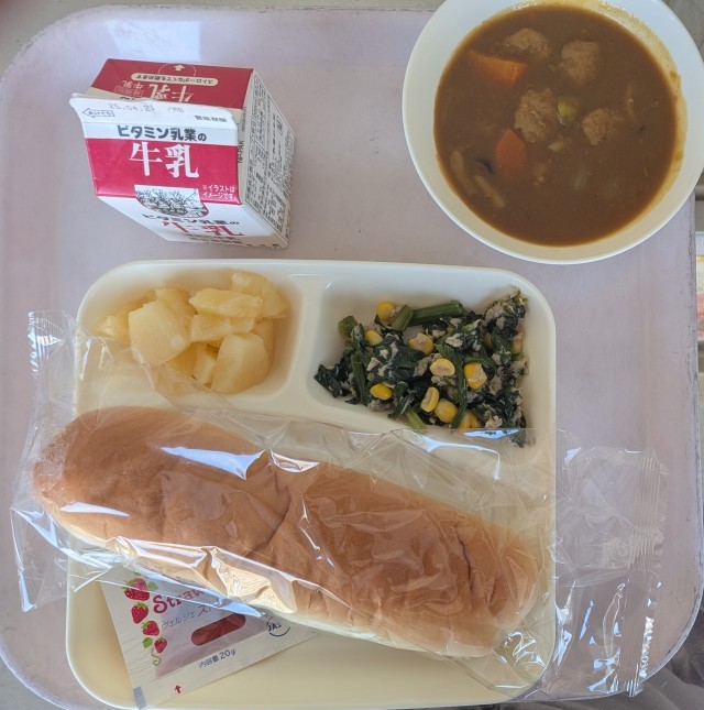 ミートボールと野菜のカレー煮 ツナとほうれんそうのソテー パインアップル(カット缶)