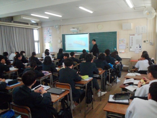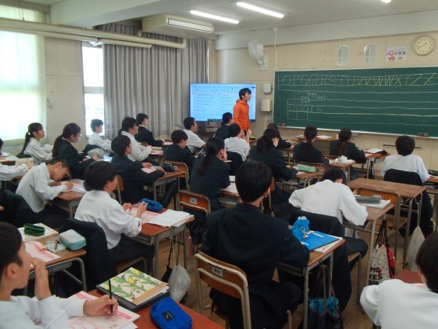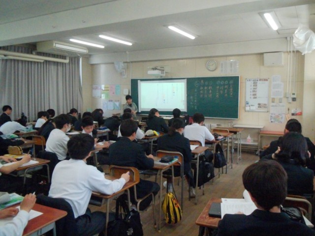 給食後の暖かな午後です。生徒は眠気を感じさせない様子で学習しています。