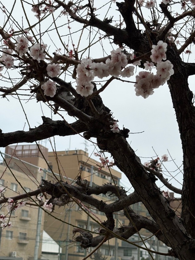 本日の陽気に誘われて、体育館横の桜の花が開いていました。来週はいよいよ卒業式です...