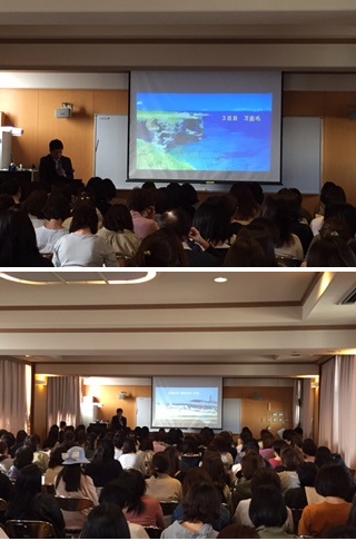 最初に今年度着任された3年所属の先生方の紹介がおこなわれ、学年主任から近況と沖縄修学旅行についての意義、その後は担当の先生から映像を使いながら、行程や諸注意について説明がありました。