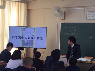 電子黒板を使って、日本の気候の特徴をテンポよく反復学習していました。