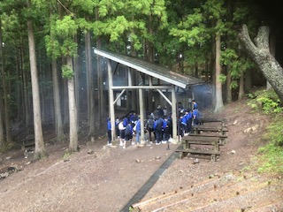 小雨の中、みんなで、協力をしてカレー作りを頑張りました。最高のカレーになったのではないでしょうか。ごちそうさまでした。