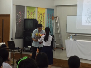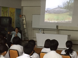 沖縄県観光ボランティアガイド友の会の方から、沖縄戦の話と米軍基地の問題について、プロジェクターを使い、約1時間お話ししていただきました。