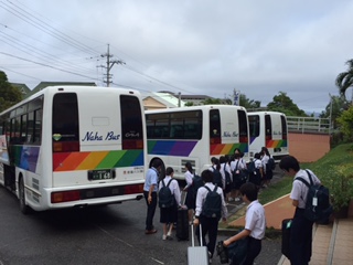 その後、バスに乗車し万座毛に向かいます。