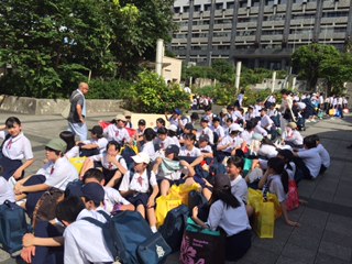 国際通りの班別行動が終了し、時間通りに県庁前に全員集合しました。