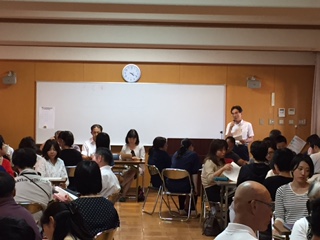 最初の全体会では両小学校長・副校長あいさつの後、本校教頭先生より、今年度の目的や校種関連系の年間予定について説明がありました。