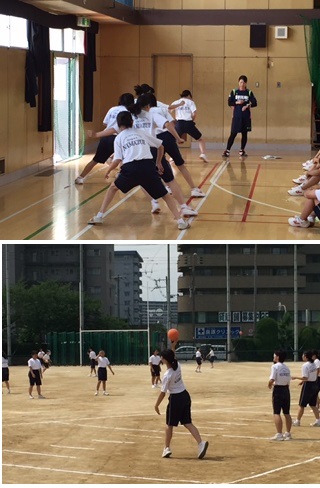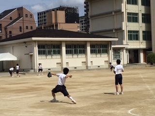 今日は、女子が反復横跳びとハンドボール投げをしていました。