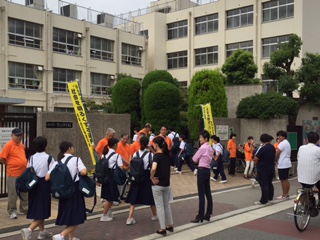 地域の方々と共に、教職員と生徒会や生活委員会も一緒に「おはようございます」とあいさつを交わしています。朝早くから地域のみなさんありがとうございました。