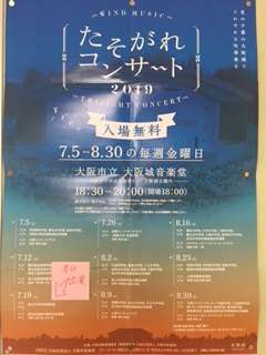 たそがれコンサートは、大阪市教育委員会が主催し、7月〜8月の毎週金曜日に開催され、市立の中・高校の他大学、自衛隊、府警などの団体が出演しています。