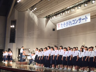 その後の航空音楽隊のオープニングでは、再度鯰江中が登場し、航空音楽隊の演奏に本校吹奏楽部の四部合唱で「COSMOS」を歌わせていただきました。