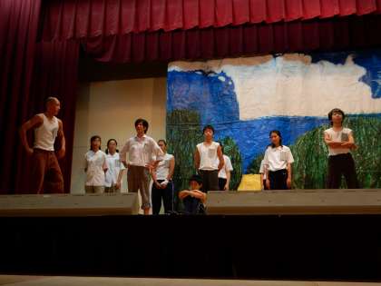 劇班:「さとうきび畑の花ゆれて」という劇をそれぞれの役になりきって熱演。沖縄における戦争中の子どもたちの現実、心情がヒシヒシと伝わり、戦時中にタイムスリップしたかのようでした。