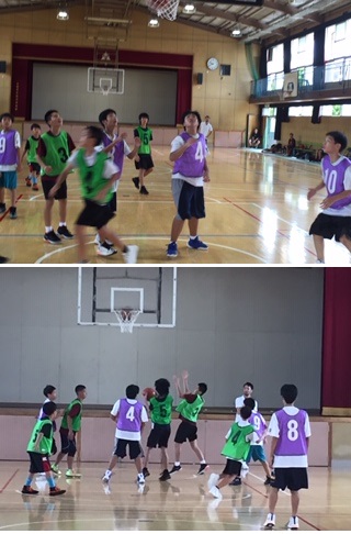 男子バスケットボール部は午前中体育館で練習試合をしています。