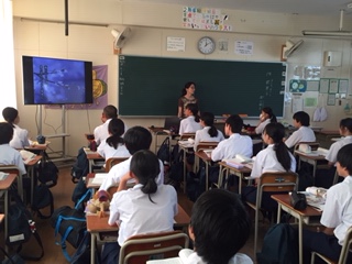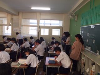 今日は国語科で2年生の古典「枕草子」の授業で、同じ国語科や他教科の先生も参観に来ていました。