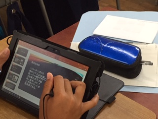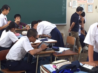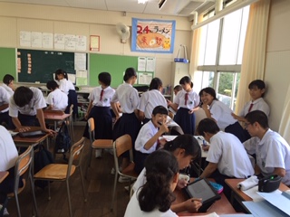 2年生は「平和」に関してテーマごとの新聞づくりやパワーポイントを使用しての発表に向けて取り組んでいました。