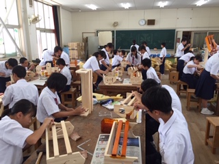 本立てもいよいよ仕上がり近くなり、早い生徒はニス塗りをしていました。