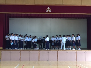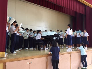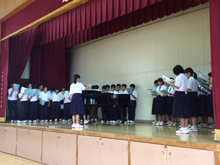 ・6時間目に体育館で1年生が合唱コンクールの練習をしていました。