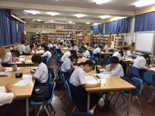 ・本日学校元気アップ事業の一環で、図書室にてテスト前自主学習会を実施しています。