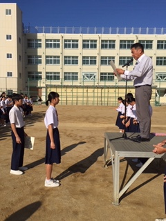 ・校長先生からは「体育の日」の由来や、来年の東京オリンピック開催に伴う休日の日程や呼称変更について説明がありました。