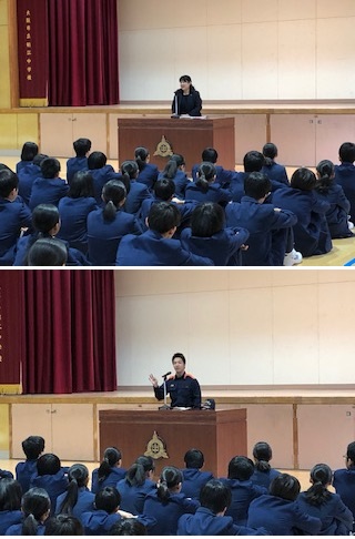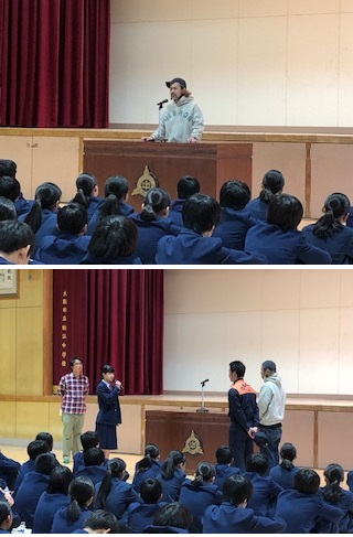 2年生が5限目に体育館でキャリア教育の一環として職業講話を聞きました。