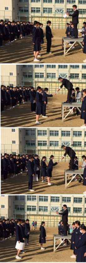 ・全校集会でラグビー部、剣道部、理科研究での表彰が行われました。