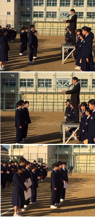 ・校長先生からは、昨日の「大阪市いじめを考える中学生フォーラム」でのお話と、「世界人権宣言」が採択された明日12月10日の「人権デー」についてお話がありました。