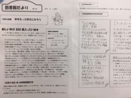 本日、図書館だよりが配布されました。