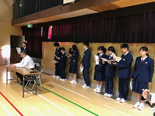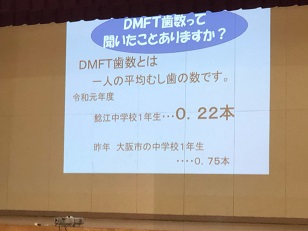1年生保健委員会の生徒と学校歯科校医さんとのディスカッション形式でおこなわれ、保健委員が、歯と口に関して事前に用意した質問について、学校歯科校医の先生に詳しく解説していただきました。