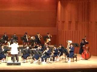 第1部の中学校ステージに鯰江中学校、生駒市の光明中学校、堺市の福泉中学校の3校が招待され、近畿大学の11月ホールで演奏しました。