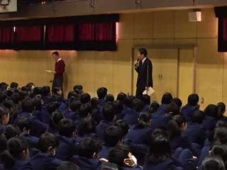 最後は、生活指導部から冬休みの過ごし方について、夜間の外出(大阪府健全育成条例)、お金に関してのトラブル、SNSの使い方などの注意がありました。