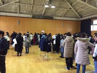 校区の小学6年生が、今までで一番児童数が多く、採寸や申し込みには長い列ができていました。