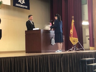 閉式後は、PTAから卒業生への記念品の紹介と保護者代表謝辞がおこなわれました。