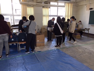本日3月25日(水)、と明日26日(木)は新入生学用品(カバン、アルトリコーダー、美術用品)の一括購入となっています。