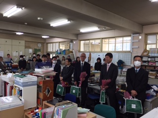 今日は、この3月で転退職により、本校を去られる教職員の離任式を、職員室で行ないました。
