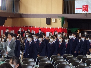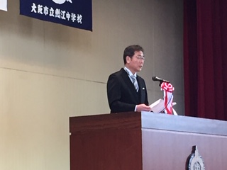 開式のことば、国歌・大阪市歌・校歌のあとの校長先生の式辞では、夢や目標達成に必要なものとして、「情熱と我慢」のお話がありました。