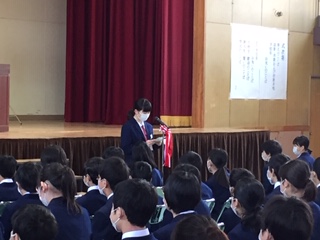 続いて、PTA会長祝辞、生徒会長のあたたかい「在校生歓迎の言葉」と、新入生代表からは力強い「新入生誓いの言葉」がおこなわれました。