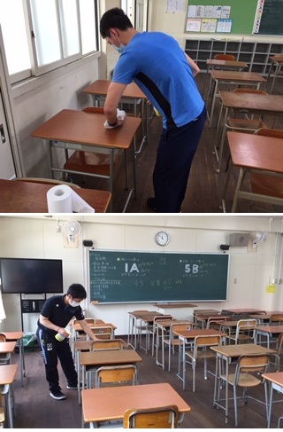 登校後は、すぐに消毒を先生達でしています。