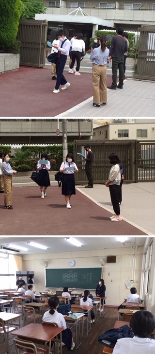 9:00から旧1組・2組の生徒、11:00から旧3組・4組の生徒、13:00から旧5組・6組の生徒が登校しました。