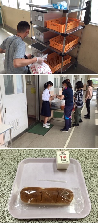 午前中3時間の授業が終了すると、学活後に簡易給食となります。