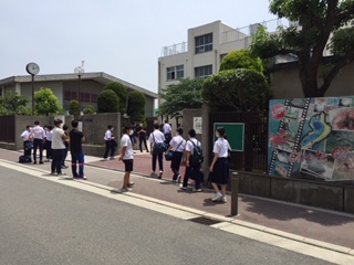 ・昨日より、気温が上がり半袖姿の登校が多くなりました。